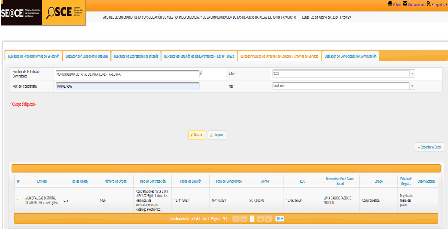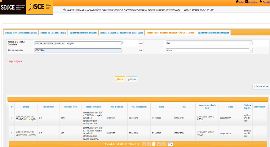 Las pruebas presentadas ante la sede de la unidad contralora incluyen registros de las órdenes de servicio subidas al sistema del OSCE y evidencia de la relación de parentesco difundida en plataformas digitales. Actualmente, el caso figura en estado de registro para que el órgano de control determine las responsabilidades de los funcionarios involucrados.